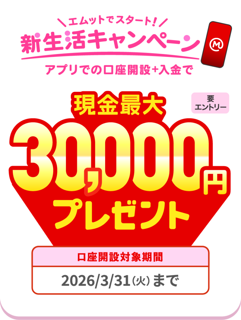 二つ目が「エムットでスタート!新生活キャンペーン」。